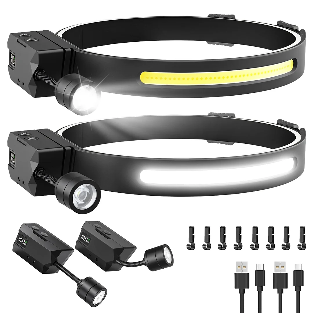 7 Lighting Modes: COB main light + XPE side light with dual-light, strobe, high/low, and motion sensor modes. Adjustable brightness saves power while meeting all your lighting needs.